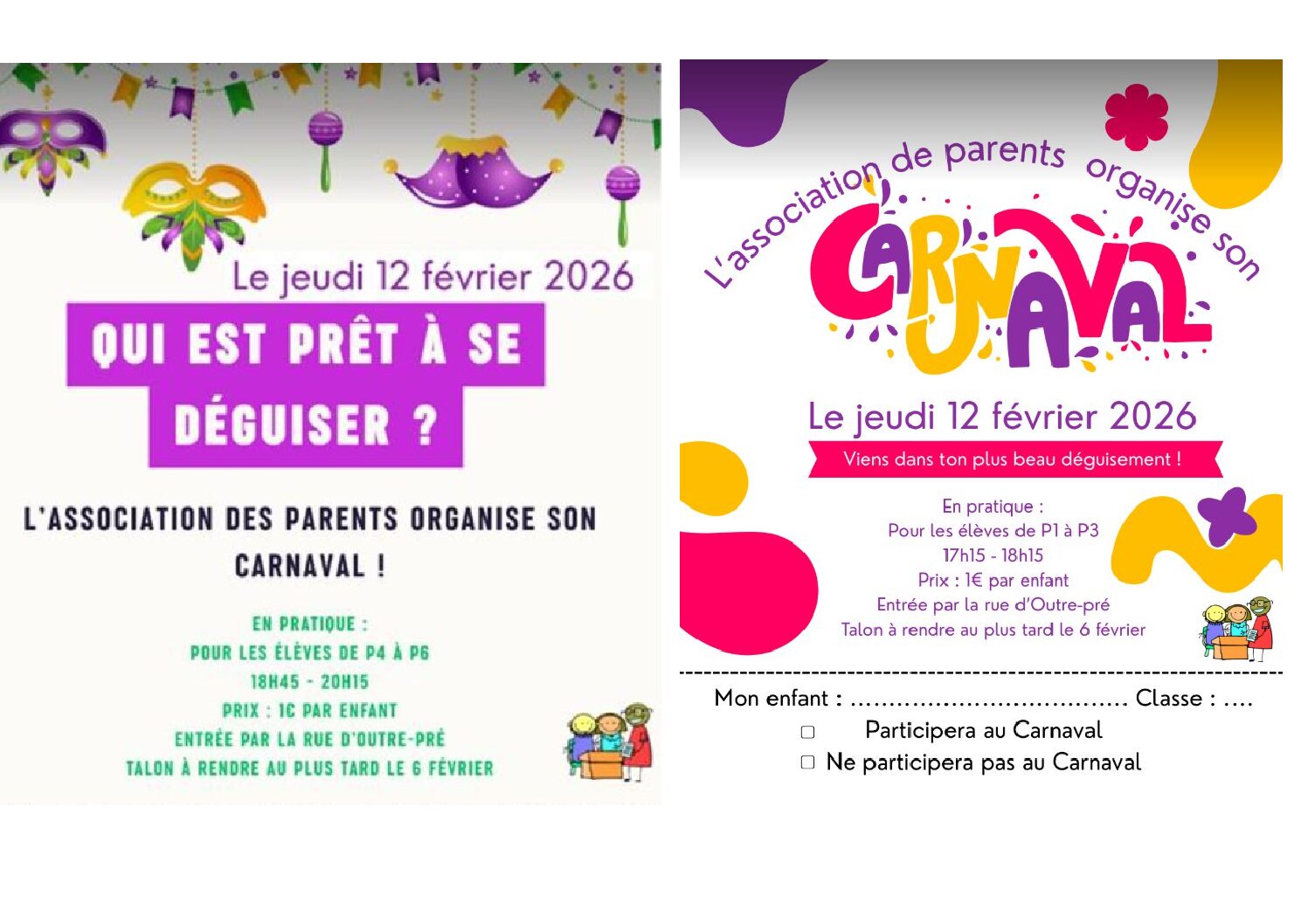 L’association des parents invite les élèves à un carnaval haut en couleurs ! Déguisements, rires et bonne humeur seront au …