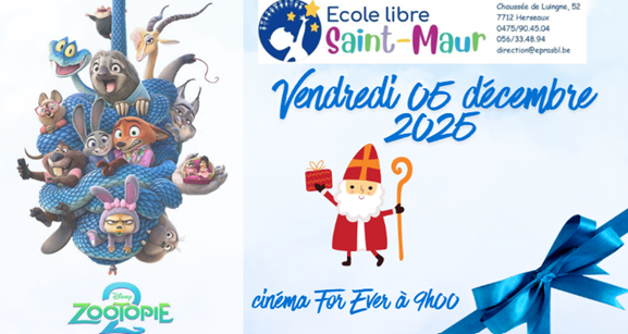 Saint Nicolas a offert aux élèves de 4e une place de cinéma pour aller voir le film Zootopie. Après la séance, les enfants ont pu prolonger cette belle journée en profitant du parc de Mouscron.