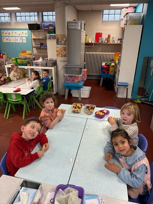 Léonie a fêté ses 5 ans entourée de ses camarades de la classe de Mme Marie (2e maternelle). Merci pour les madeleines et les cookies 🍪🥳