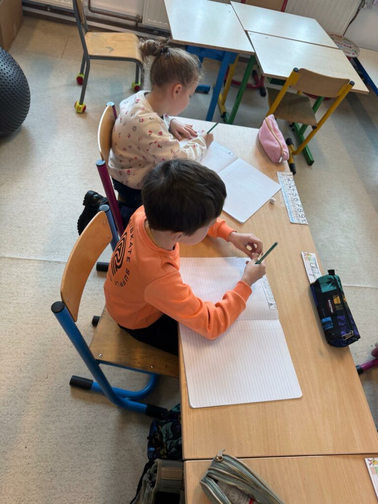 Les enfants ont d’abord réfléchi à une question qu’ils se posaient 🤔, puis l’ont écrite dans leur cahier 📓.